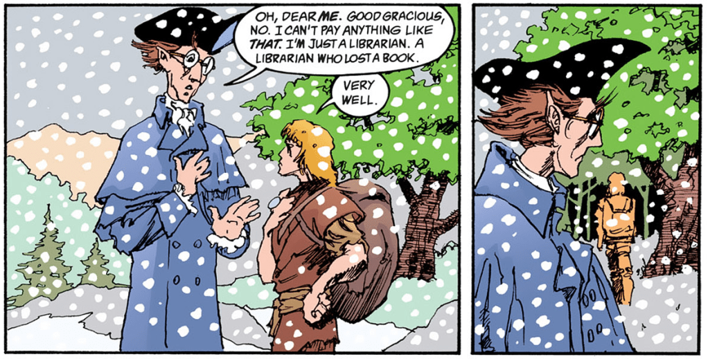 But the rest of the comic series quickly moves away from this focus as Gaiman finds his feet and figures out the kind of story he wants to tell. The story instead evolves into some combination of “campfire stories that, in subtle or peripheral ways, advance the plot / develop the characters“, plus “grounded, unmagical, psychologically realistic slice-of-life storytelling that collides with magical-realism elements“.